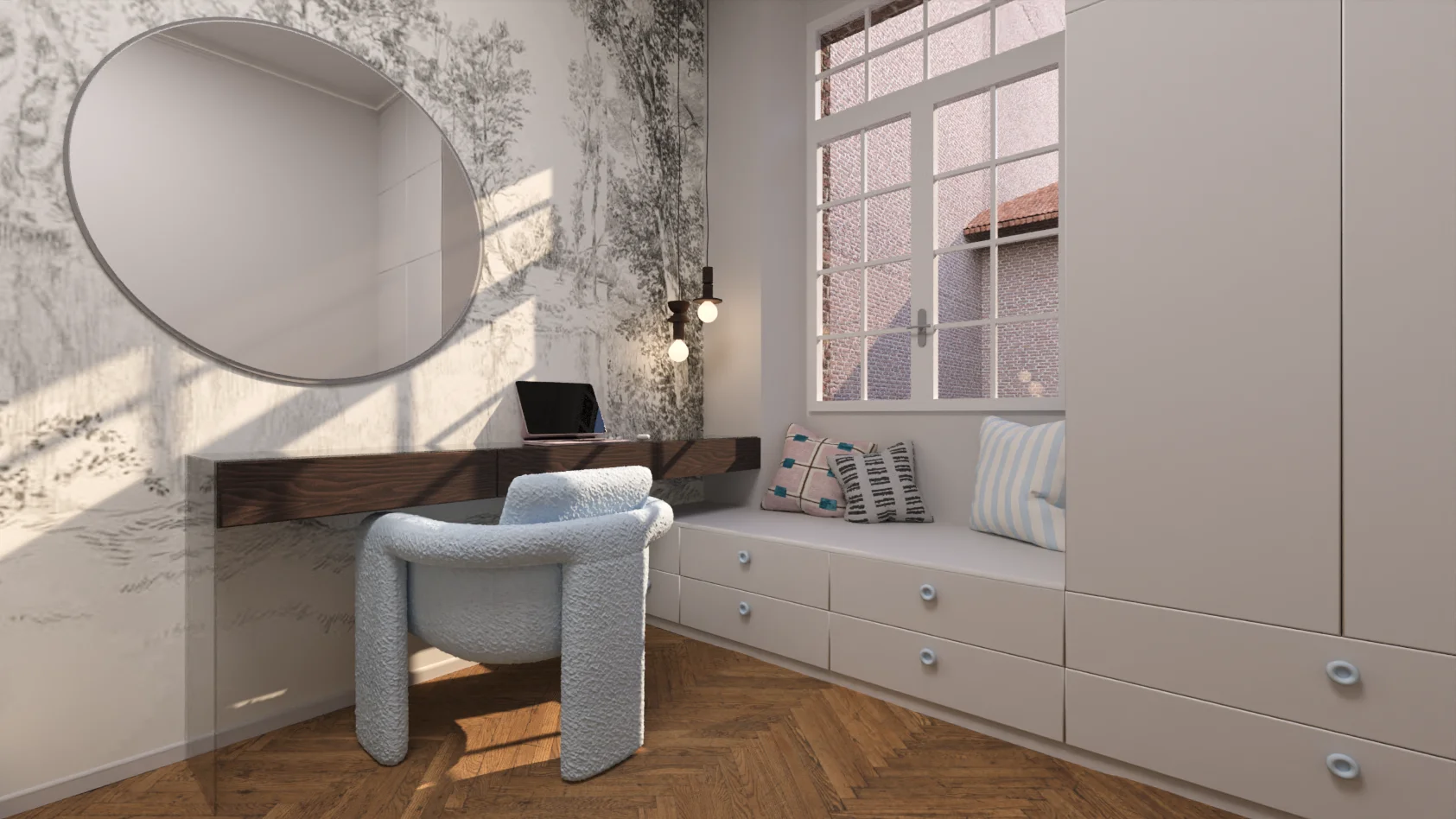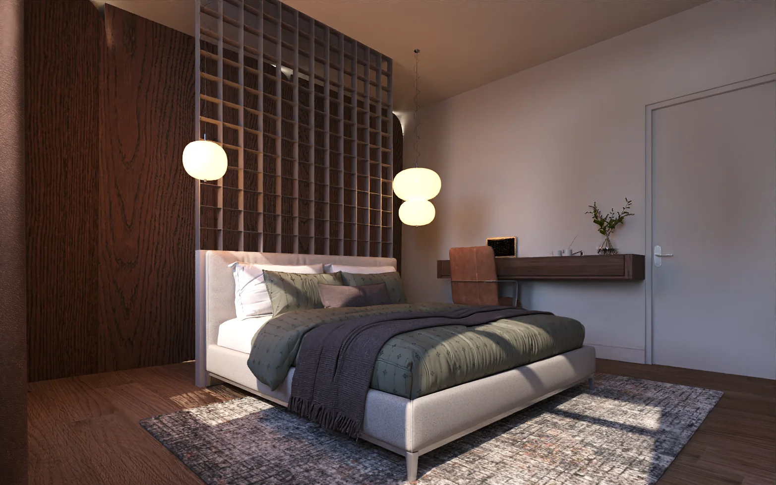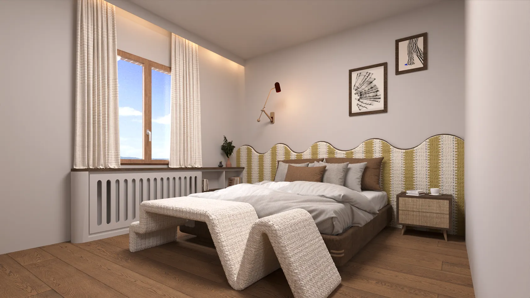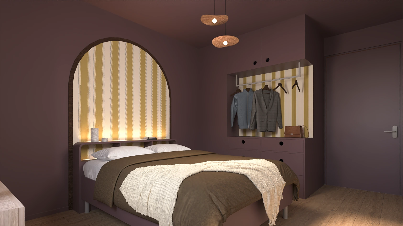 Le projet s’inscrit dans une esthétique contemporaine aux influences scandinaves, mêlant luminosité, douceur et modernité. L’espace nuit se distingue par une ambiance néo-rétro douce et apaisante, offrant un cocon chaleureux et fonctionnel.